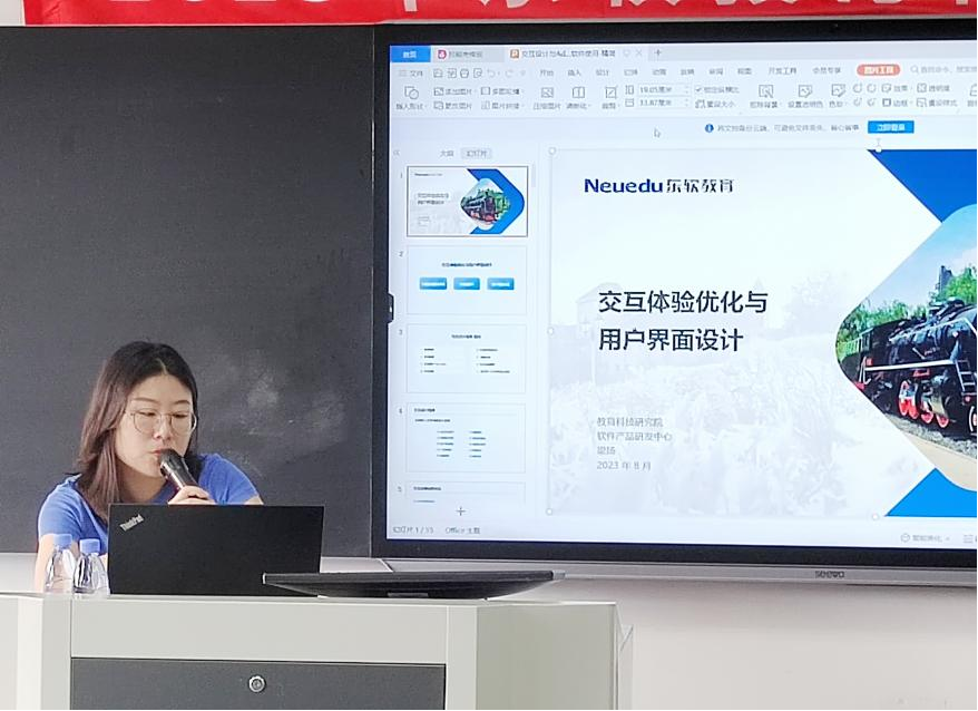 随后,k8凯发(中国)教育科技集团教育科技研究院软件产品研发中心设计师梁扬进行交互体验课程讲解。内容围绕交互应用场景案例优化、UI配色技巧以及交互界面布局展开。