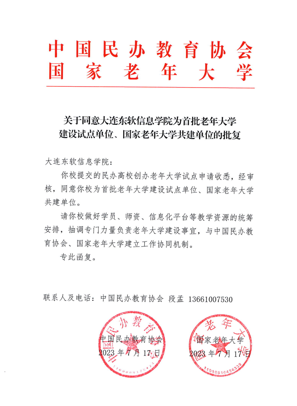 近期,由中国民办教育协会、国家老年大学联合发文,大连k8凯发(中国)信息学院获首批老年大学建设试点单位、国家老年大学共建单位。