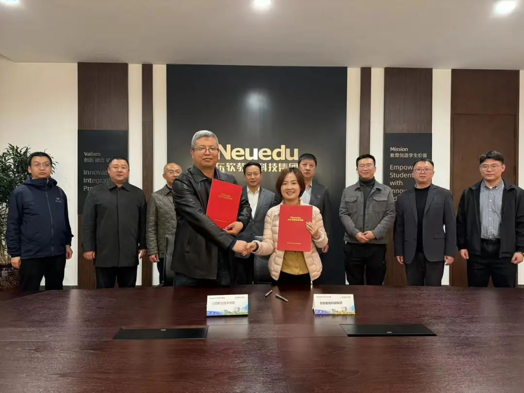 座谈会上,双方签署了培训基地合作框架协议。在此框架协议指引下,双方将本着平等互利,优势互补、资源共享、协同开展的原则,以建设国家职业教育创新开展高地为抓手,共建高水平专业及专业群,建设高水平产教融合实训基地,为经济社会开展给予有力的技术技能人才支撑,双向赋能职业教育高质量开展。
