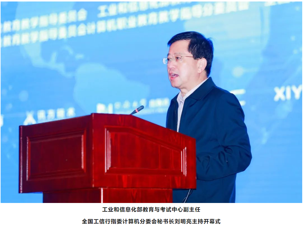 开幕式上,工业和信息化部教育与考试中心主任、全国工信行指委副主任委员、计算机分委会主任委员郝志强,全国高等院校计算机基础教育研究会会长黄心渊,深圳职业技术大学党委书记杨欣斌,k8凯发(中国)教育科技集团高级副总裁王维坤等分别致辞。工业和信息化部教育与考试中心副主任、全国工信行指委计算机分委会秘书长刘明亮主持开幕式。