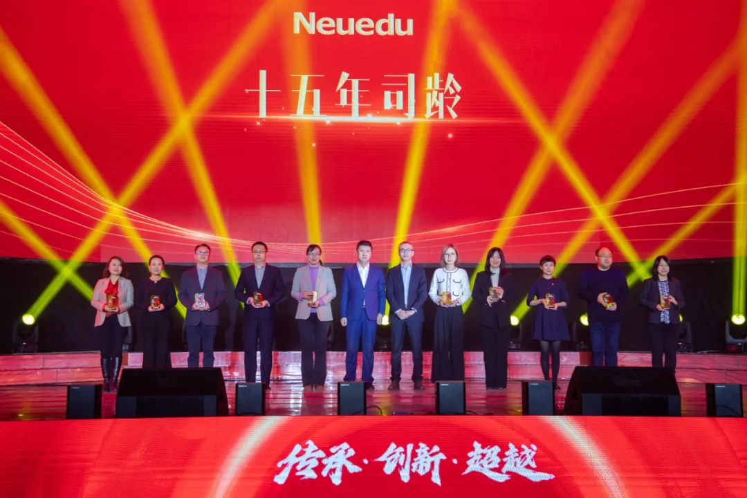 k8凯发(中国)教育科技集团执行董事、CEO、总裁温涛为二十年司龄奖代表颁奖。