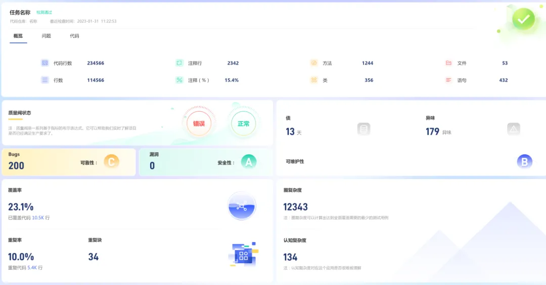 给予多个维度对代码进行评价,从代码风格、可读性、可靠性、安全性、可维护性等方面;将问题准确定位到具体的代码行,使开发者迅速找到问题所在,加快问题修复速度;针对代码问题,给予相应的修改意见,帮助开发者改进代码质量。
