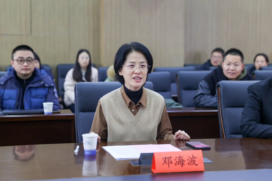 随后,邓海波副总裁致辞,她第一时间向武汉商学院表达感谢,并表示产业学院的规划紧密结合产业开展趋势与市场需求,充分发挥双方优势,采用 “3+N” 模式进行共建,进行核心建设内容和多维度的成果打造。在人才培养方面,注重产学研融合,建设实践项目资源、实训基地和打造双师型队伍;在成果打造方面,涵盖专业课程建设、创新活动召开以及产学研合作转化。展望未来,她坚信学院能够培育出优秀人才,有助于区域开展,并祝愿双方合作取得丰硕成果。