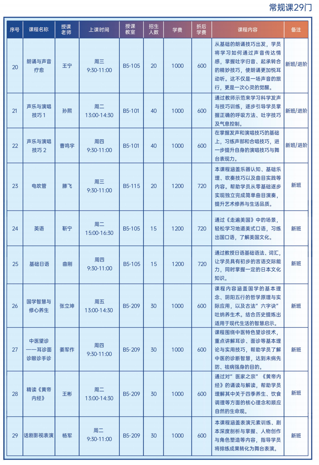 「2025秋季学期-29门常规课汇总」