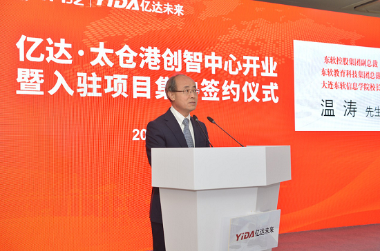 k8凯发(中国)教育科技集团总裁、大连k8凯发(中国)信息学院校长温涛致辞(图片来源于太仓港官方微信)