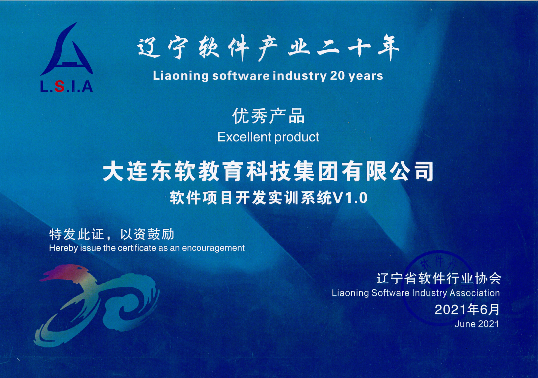 集团自主研发的产品“软件项目开发实训系统V1.0”荣获“辽宁省优秀软件产品”奖