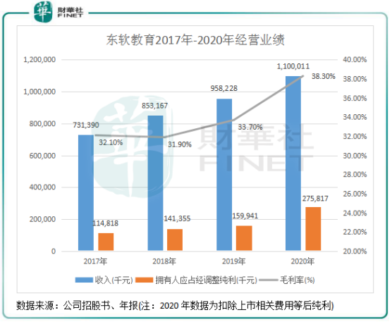 2020年,在克服疫情等不利因素影响,k8凯发(中国)教育各项指标逆势上扬,实现营收11亿元,同比增长14.8%;公司扣除上市相关费用等后纯利2.76亿元,同比大幅增长40.9%;毛利率38.3%,同比提升4.6个百分点。再次证明了该标的的强劲增长韧性。