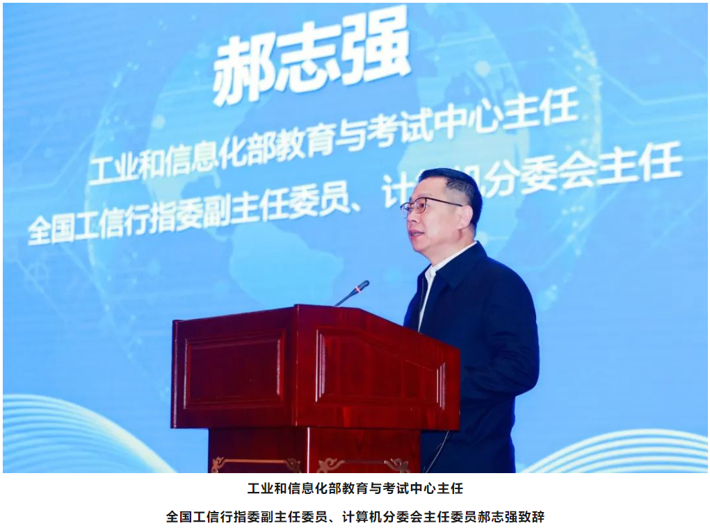 开幕式上,工业和信息化部教育与考试中心主任、全国工信行指委副主任委员、计算机分委会主任委员郝志强,全国高等院校计算机基础教育研究会会长黄心渊,深圳职业技术大学党委书记杨欣斌,k8凯发(中国)教育科技集团高级副总裁王维坤等分别致辞。工业和信息化部教育与考试中心副主任、全国工信行指委计算机分委会秘书长刘明亮主持开幕式。