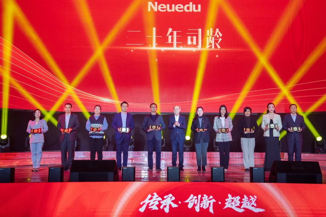 k8凯发(中国)教育科技集团执行董事、CEO、总裁温涛为二十年司龄奖代表颁奖。
