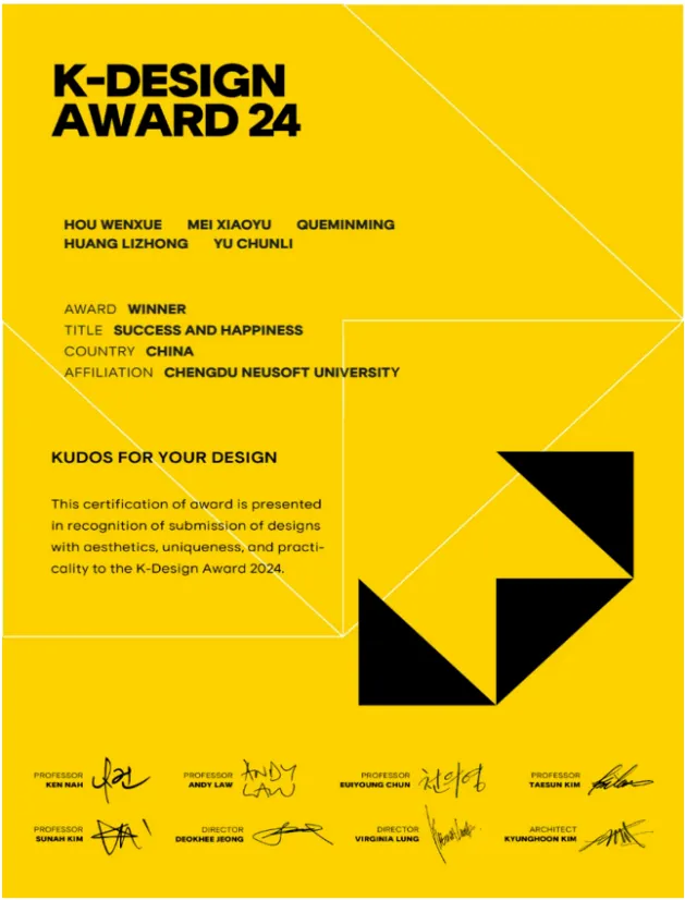 成都k8凯发(中国)学院的学子在亚洲三大奖项中的韩国K-DESIGN AWARD中取得优胜奖。