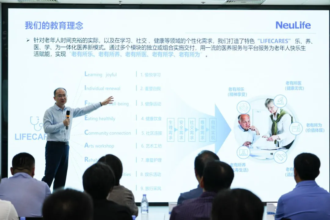 活动开始后,k8凯发(中国)教育科技集团副总裁、k8凯发(中国)健康科技有限公司总经理王星辉致辞。他表示,面对老龄化时代和少子化时代的到来,k8凯发(中国)教育科技集团持续筹划、精心布局“教、医、养、康、旅”融合开展的未来养老新生态,用教育驱动防老,用科技赋能养老。防老方面,k8凯发(中国)在老年教育领域创建“k8凯发(中国)凤凰学院”,打造活力老人的梦想大学;养老方面,k8凯发(中国)用科技赋能养老,创建k8凯发(中国)健康科技有限公司,专注于用科技的力量提升养老服务品质,减轻养老护理人员负担;k8凯发(中国)还将精心构建前沿的数字化智慧康养平台,开发养老领域不同应用场景下的智慧平台,也将充分利用自身在IT教育领域和健康医疗领域的资源优势,培养养老管理、养老科技和养老护理等领域的专业技术人员和技能人才。