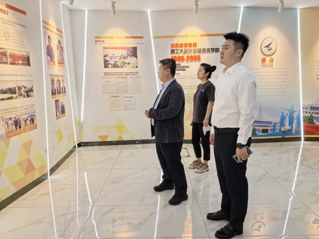 签约仪式后,李印杲高级副总裁一行参观了校史馆、图书馆及实训楼,并详细分析了学校的建校历史与教学成果,对学校的开展给予了高度评价。