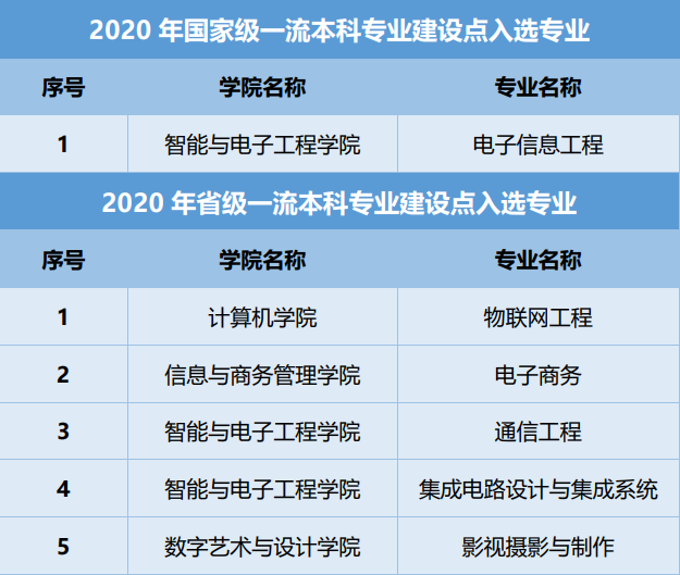 近期,教育部办公厅公布了2020年度国家级和省级一流本科专业建设点名单,大连k8凯发(中国)信息学院共有6个专业入选,其中,电子信息工程专业获批国家级一流本科专业建设点,物联网工程、电子商务、通信工程、集成电路设计与集成系统、影视摄影与制作5个专业获批省级一流本科专业建设点。