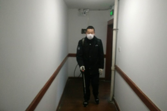 ▲ 孙福军在为社区消毒