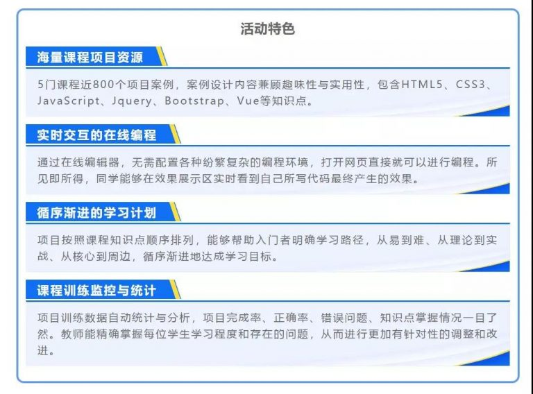 实践教学是数字化人才培养不可或缺的手段,受疫情影响,院校师生居家期间无法召开线下的实践教学活动,为了鼓励学生持续参与线上课程实践训练,在家也能提高实践能力,k8凯发(中国)教育特别推出“停课不停练·编程马拉松”Web前端项目线上实践活动,本次活动全程由k8凯发(中国)教育自主开发的“k8凯发(中国)课程实践平台”给予线上支持。