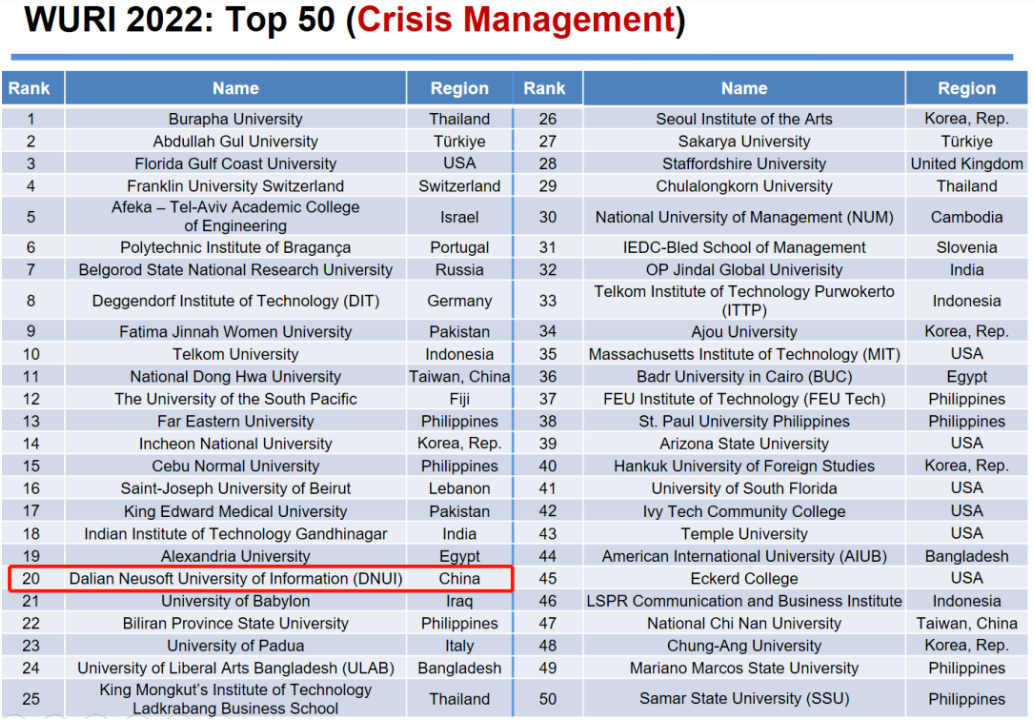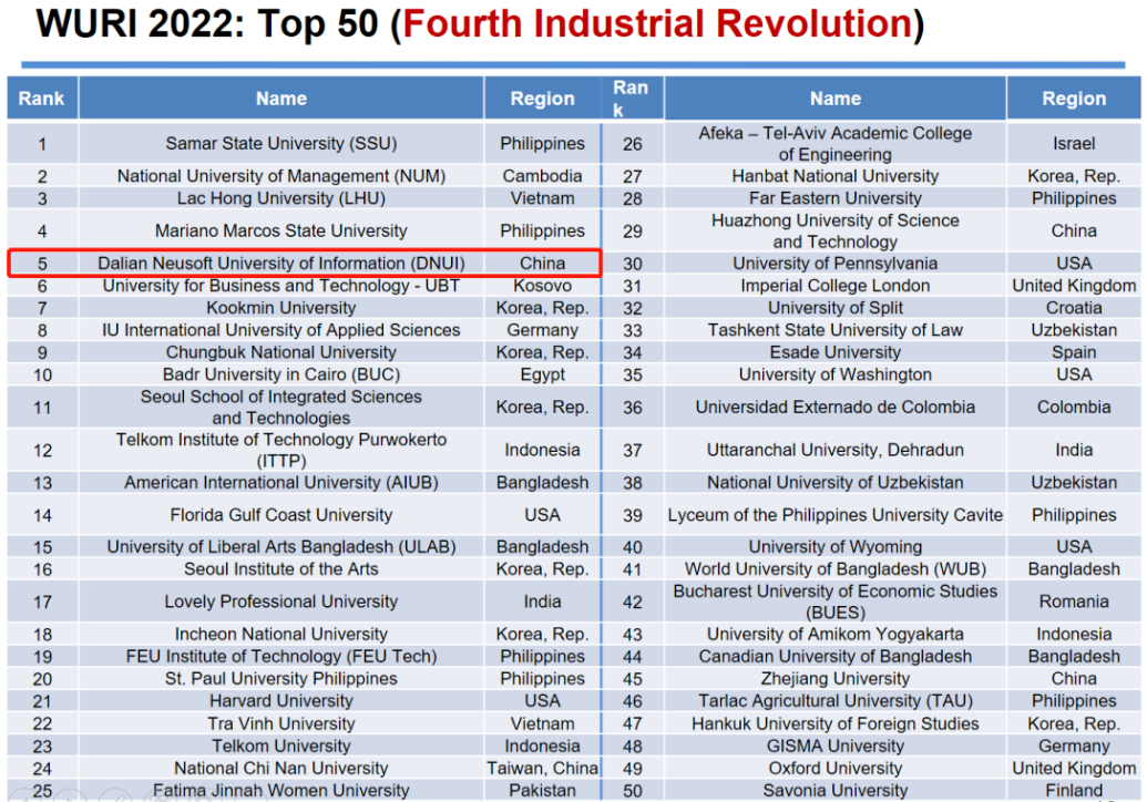 在最新发布的2022 WURI RANKING(2022真实影响力世界大学排名)中,学校再创佳绩,在全球创新大学百强(Global Top 100 Innovative Universities)中排名第91位,较去年提升6位,成为本年度入围该排行榜的第七所中国大学。入围全球创新大学百强的中国高校还有清华大学、北京大学、长江商学院、北京师范大学、北京工商大学、香港科技大学。