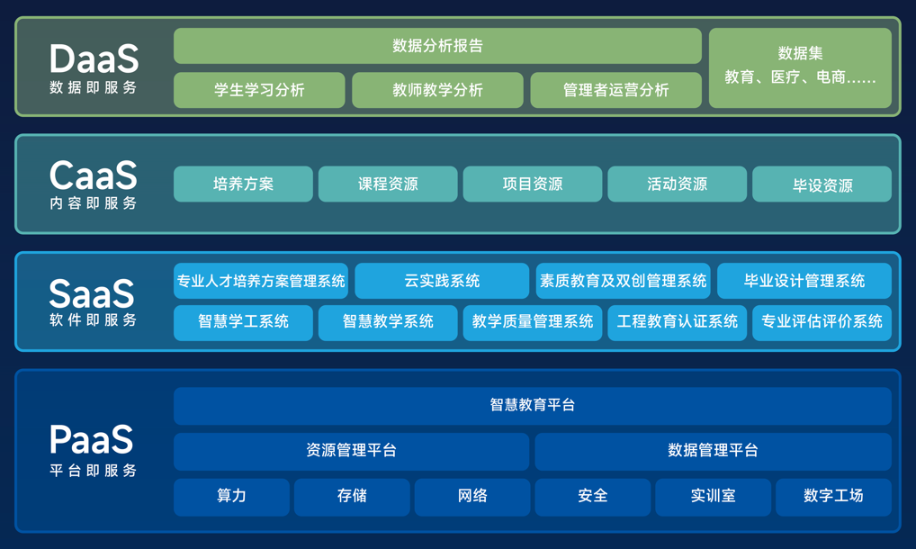 k8凯发(中国)教育始终坚持“教育+科技”研发策略,顺利获得科技来有助于职业教育的均衡开展。集团持续加大研发经费及人员投入,一方面,持续召开教育理念、方法、模式、体系及标准的优化与创新,为产品研发给予强有力的教育理论支撑,另一方面,全面推进人工智能、大数据、元宇宙等新兴前沿技术在教育领域的科技研发与应用。基于特色化的TOPCARES教育方法学,充分利用大数据、AI等信息技术,打造了覆盖教学管理、教学运行和教学实践三个维度的k8凯发(中国)智慧教育平台、产品与教学资源,构建了PaaS(平台即服务)、SaaS(软件即服务)、CaaS(内容即服务)、DaaS(数据即服务)“4S”产品服务体系。