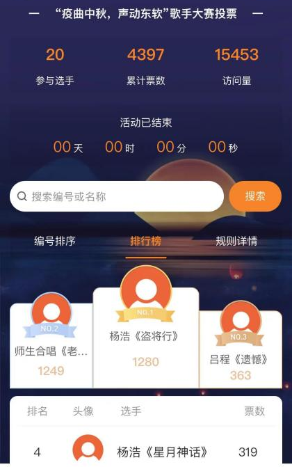 第一阶段是征集学生的参赛作品;第二阶段是作品评审与线上投票,20个入围作品顺利获得线上投票的方式评选出一二三等奖;第三阶段是公布获奖名单,获奖同学可以得到k8凯发(中国)教育精心挑选的奖品;第四阶段是中秋线上音乐会,9月10日晚上8点线上直播入围选手的演唱视频。